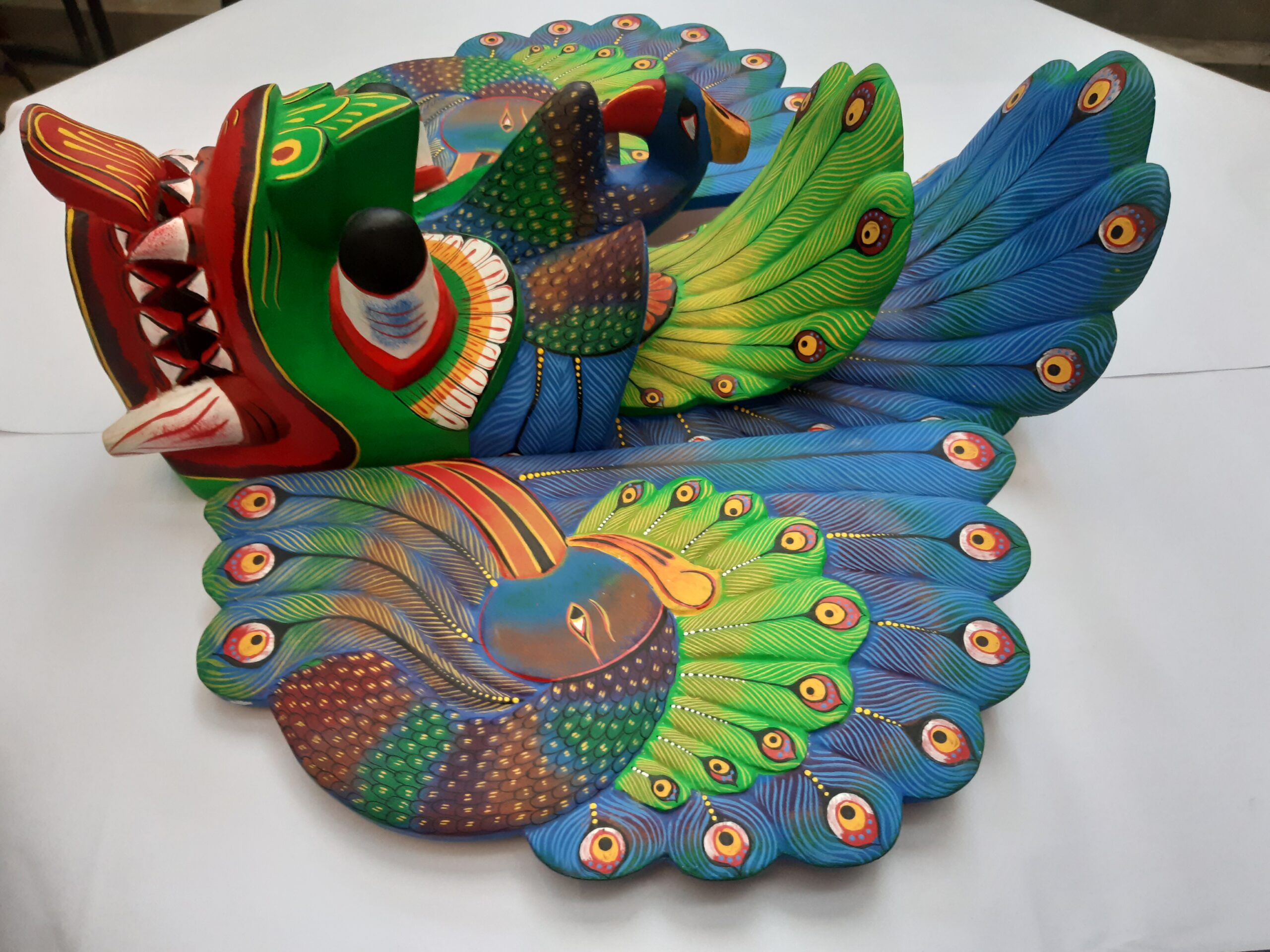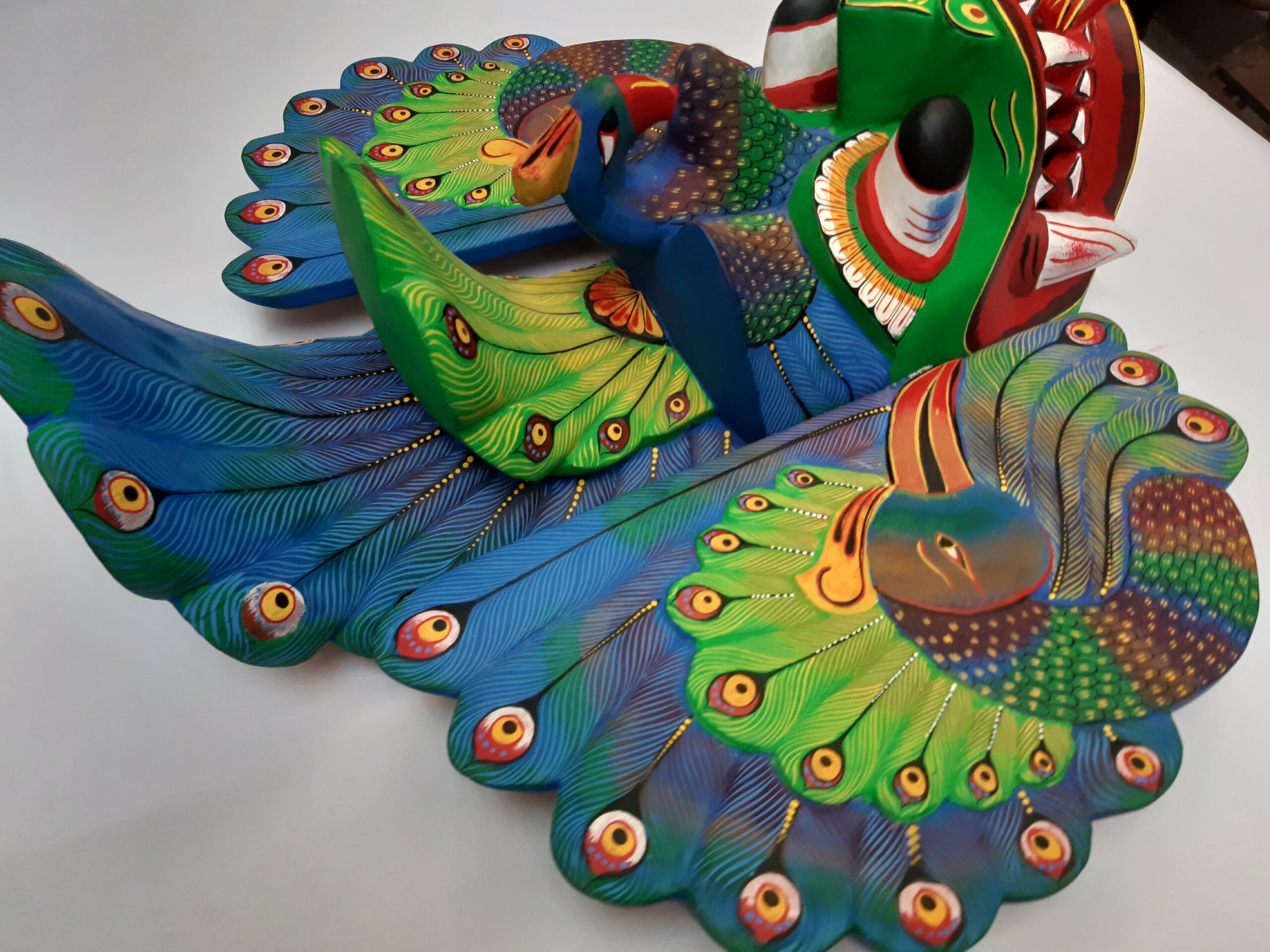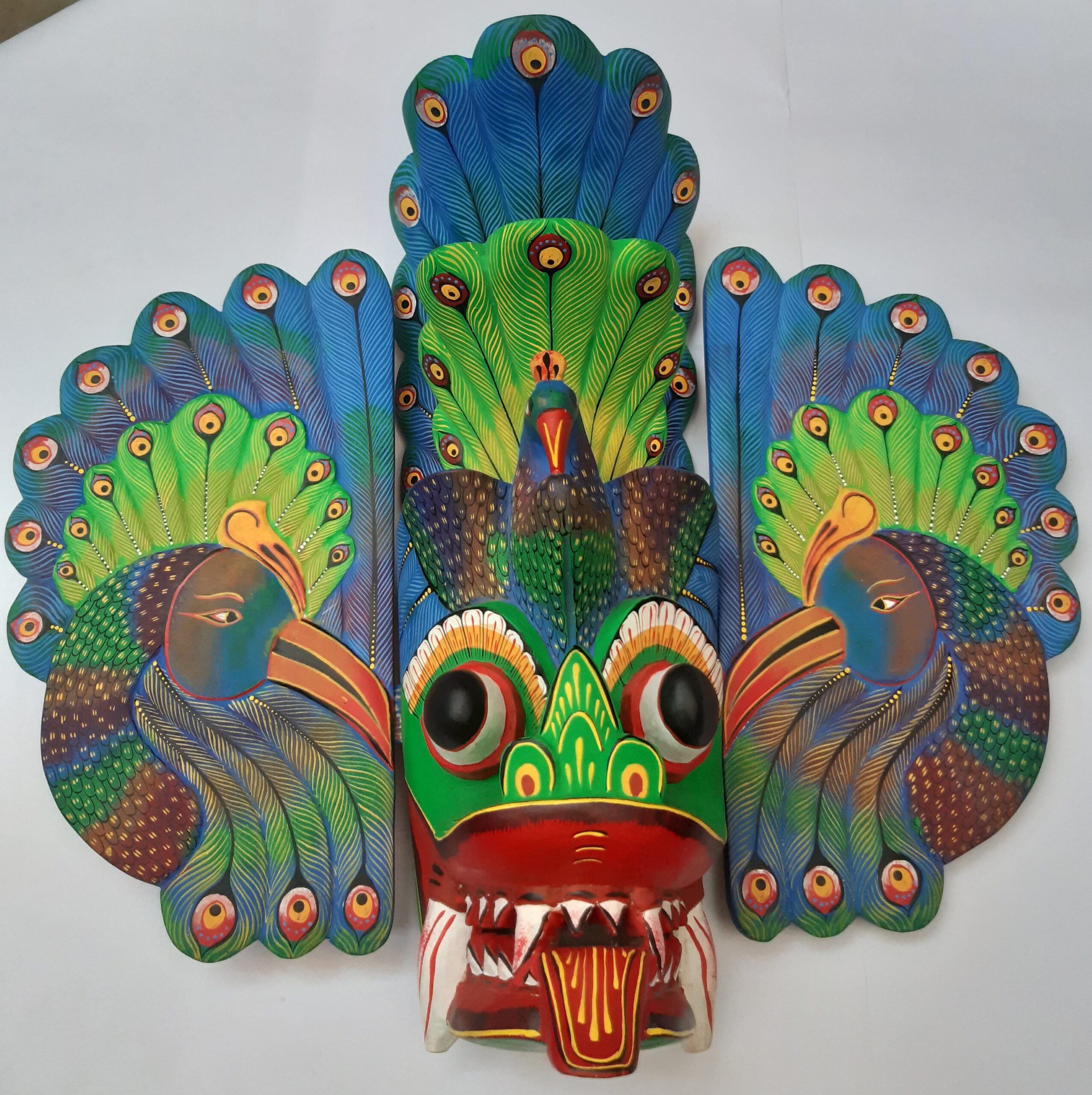 Colorful Handmade Wooden Big 18″Peacock Mask – From Sri Lanka
