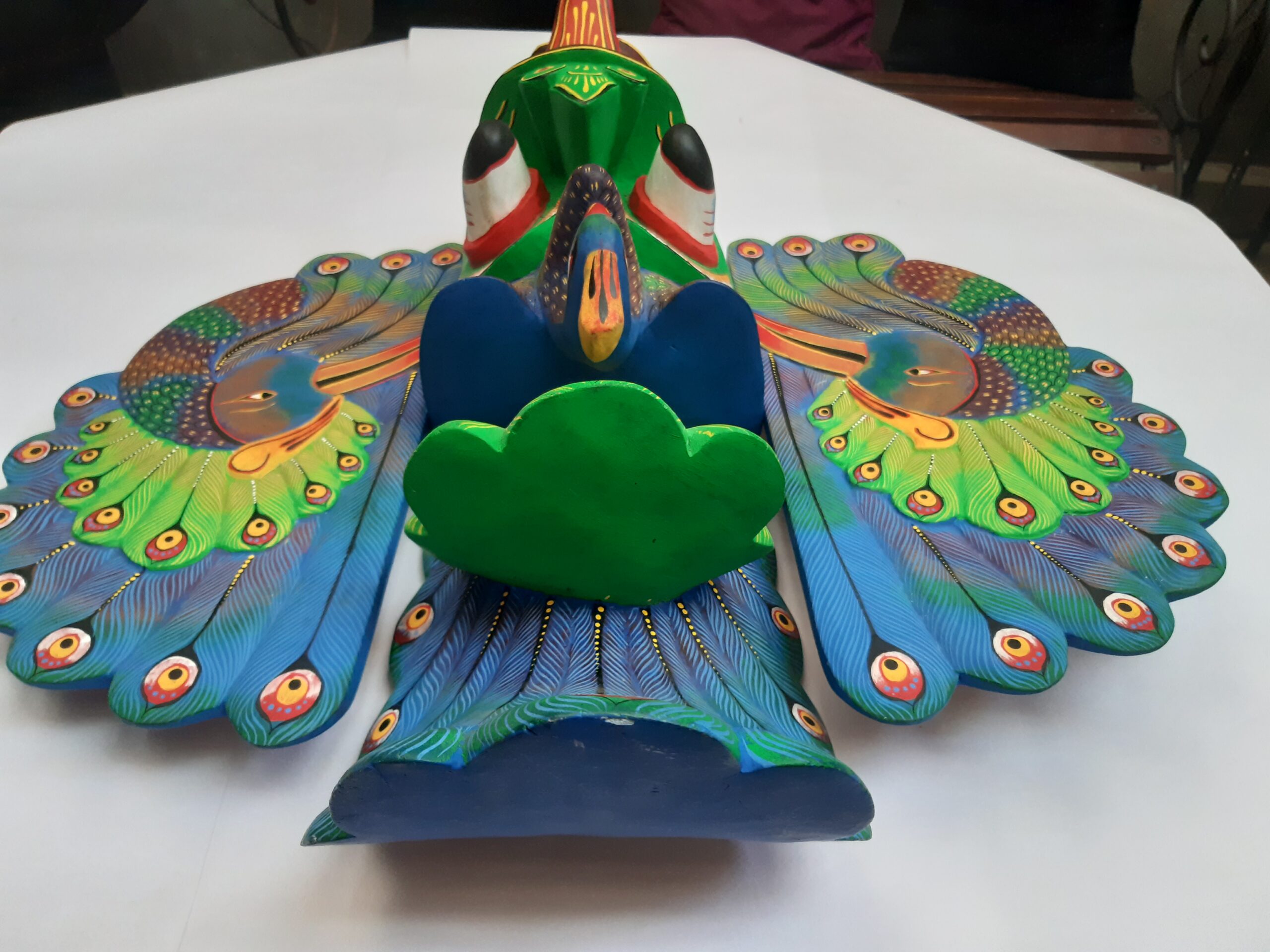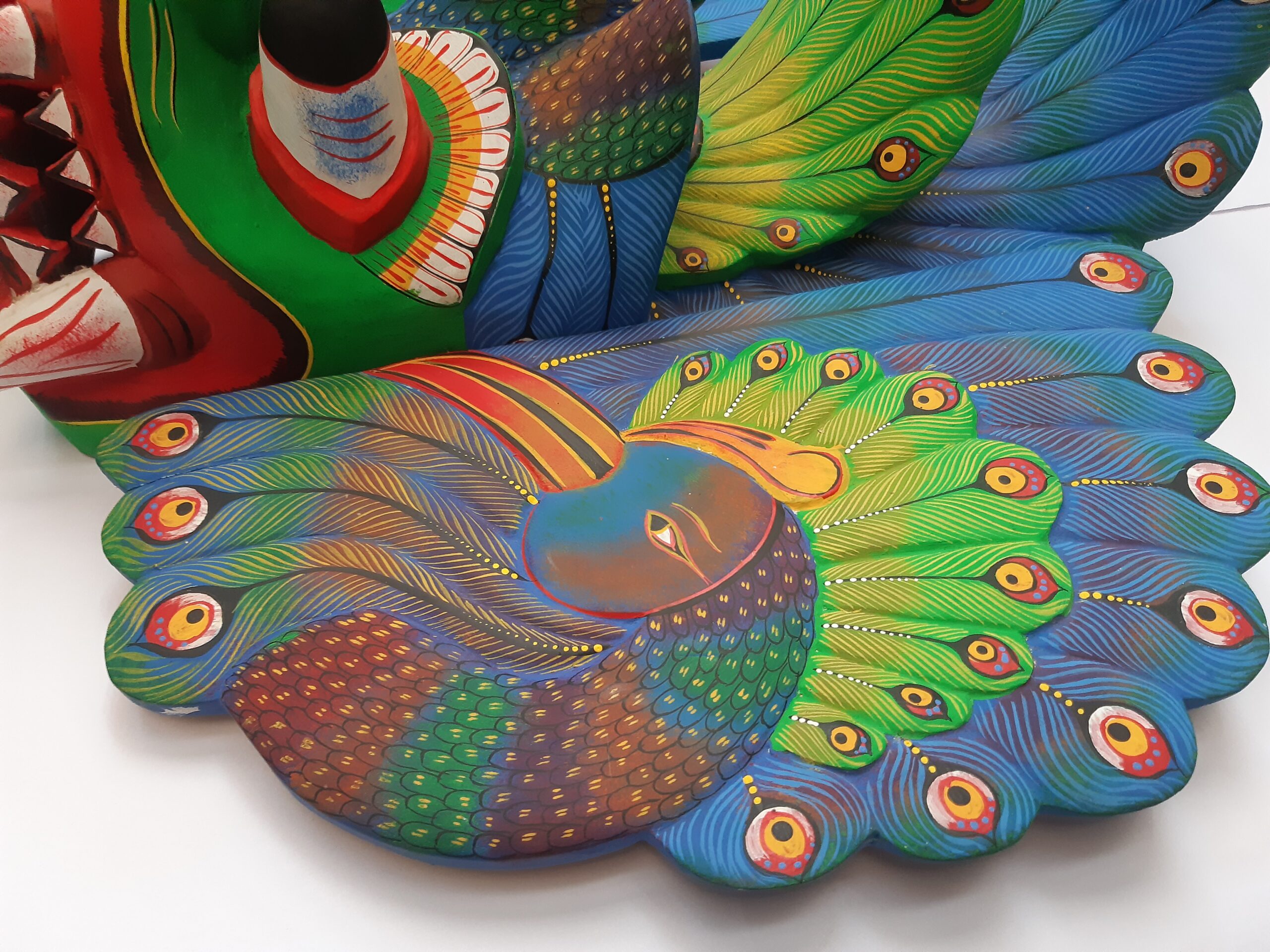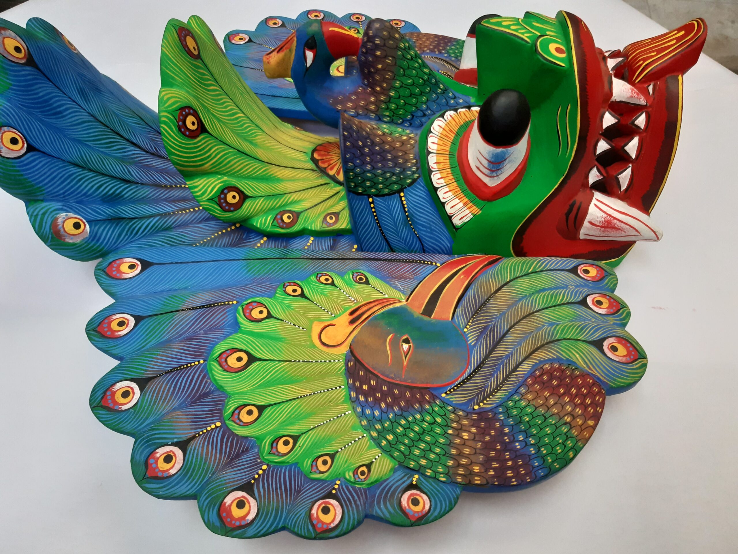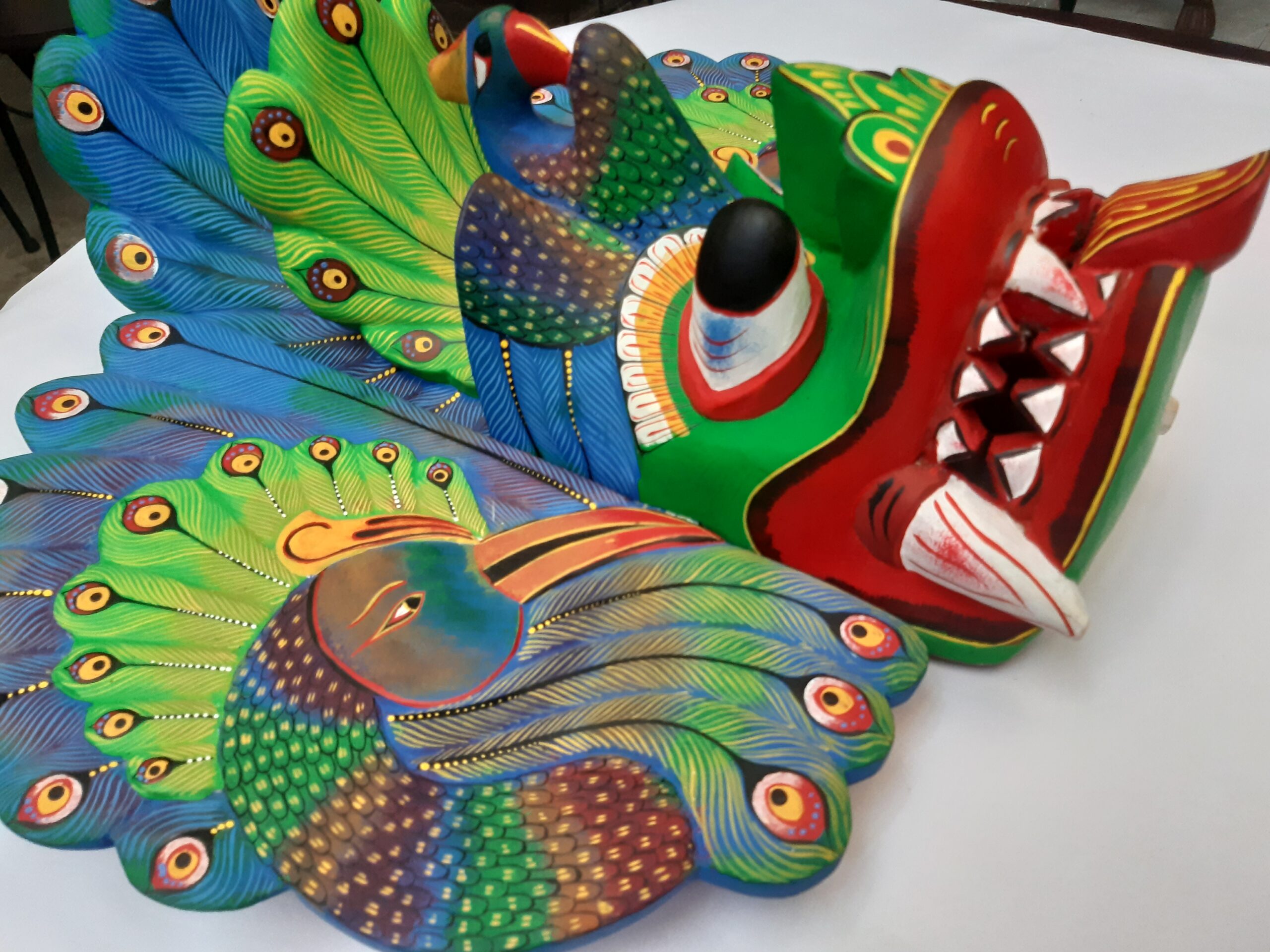 Colorful Handmade Wooden Big 18″Peacock Mask – From Sri Lanka