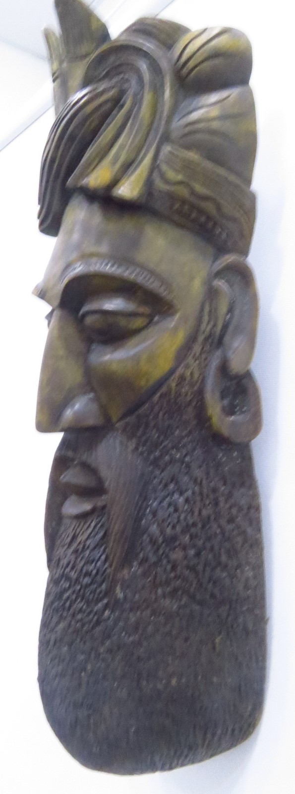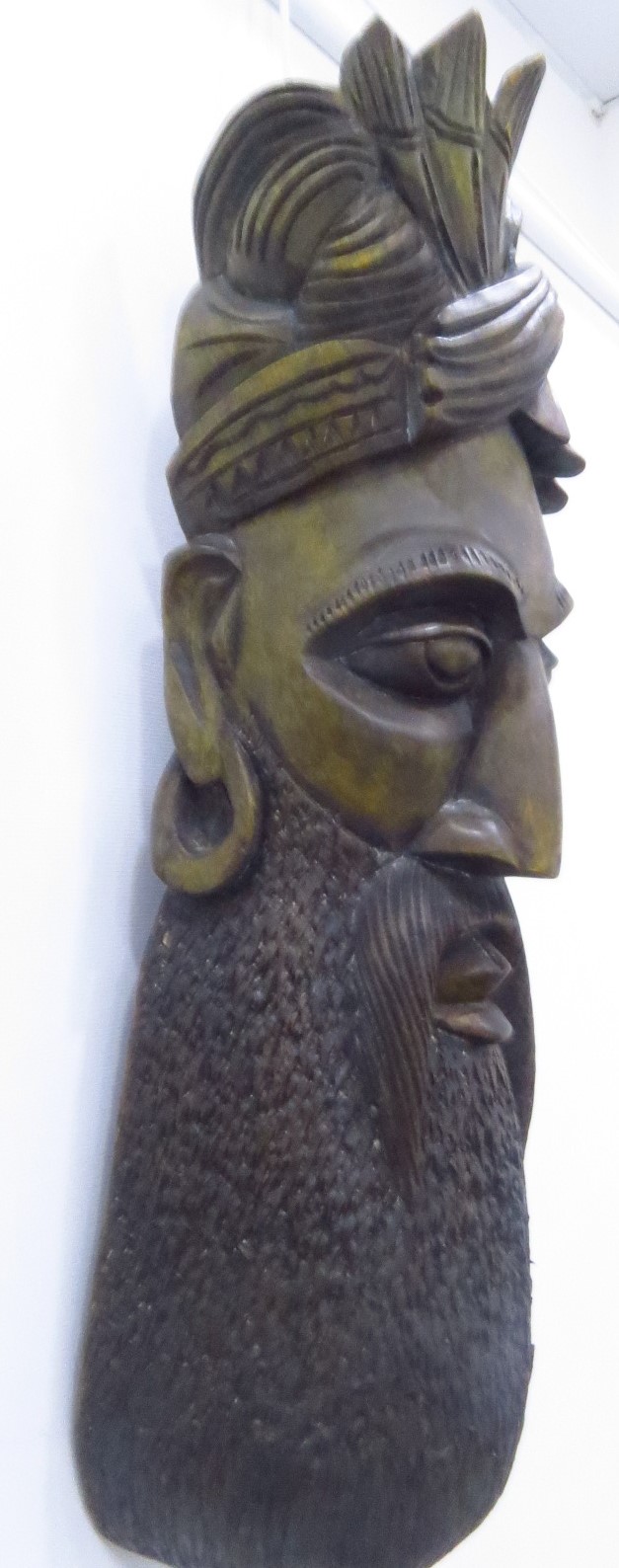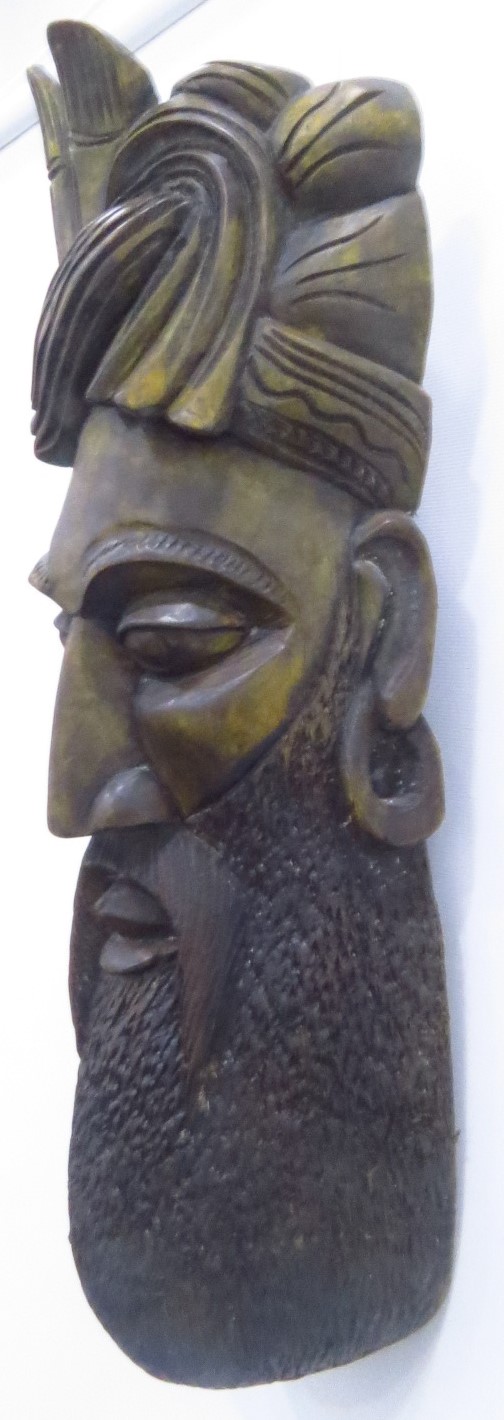 Sri Lankan Handmade Big Wooden Mask- Golden Greenish Colour – Bamunu 2